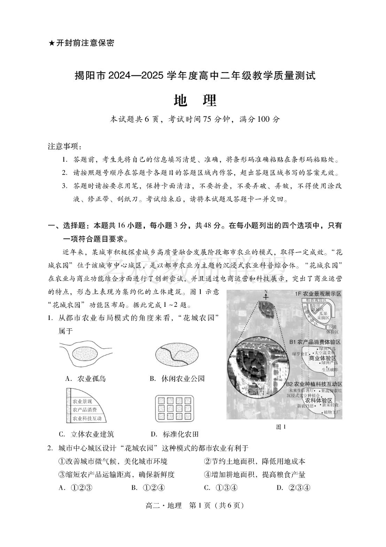 广东省揭阳市2024-2025学年高二下学期期末教学质量测试 地理试卷(含答案).pdf