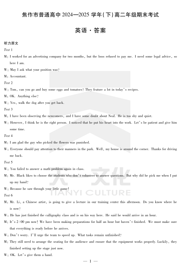 英语焦作高二下期末详细答案.pdf