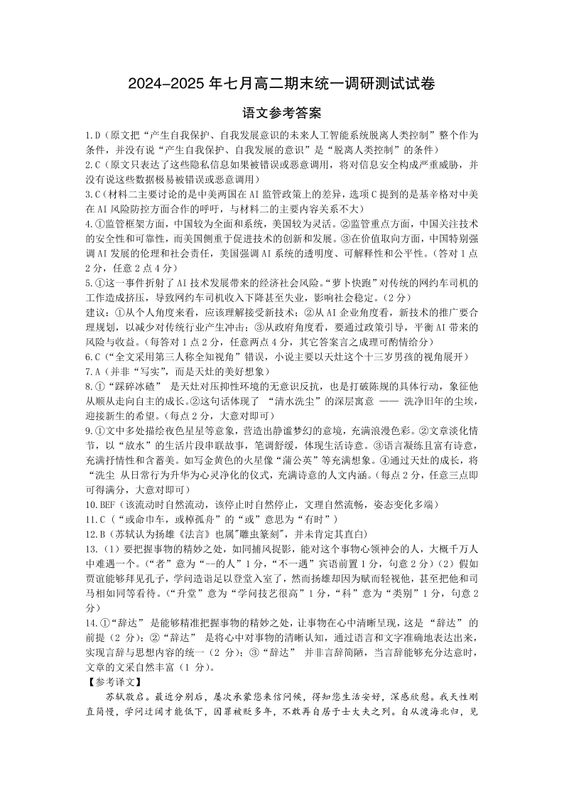 湖北省2024-2025学年七月高二期末统一调研测试 语文答案.pdf