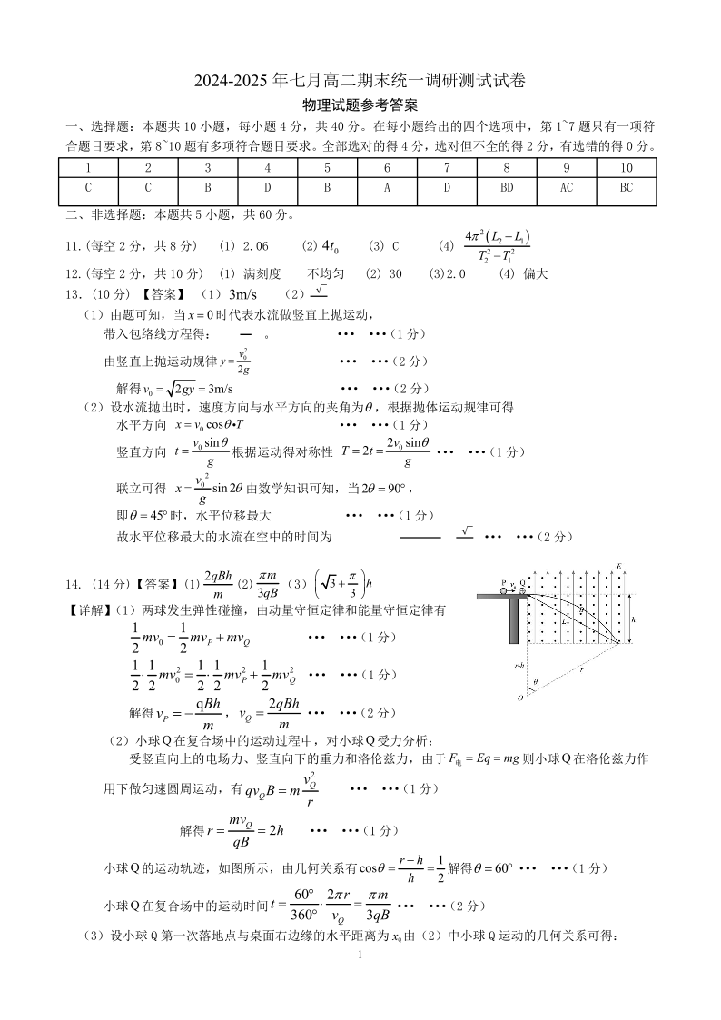 湖北省2024-2025学年七月高二期末统一调研测试 物理答案.pdf