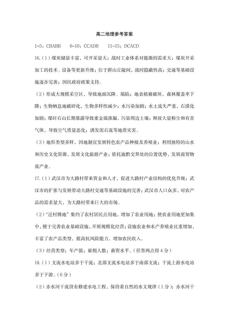 湖北省荆州市2024-2025学年高二年级质量检测 地理参考答案.pdf