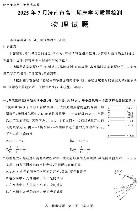 山东省济南市2025年7月高二期末学习质量检测 物理.pdf