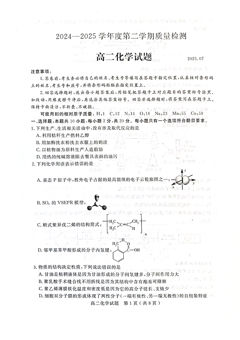 山东省济宁市2024-2025学年度高二质量检测 化学.pdf