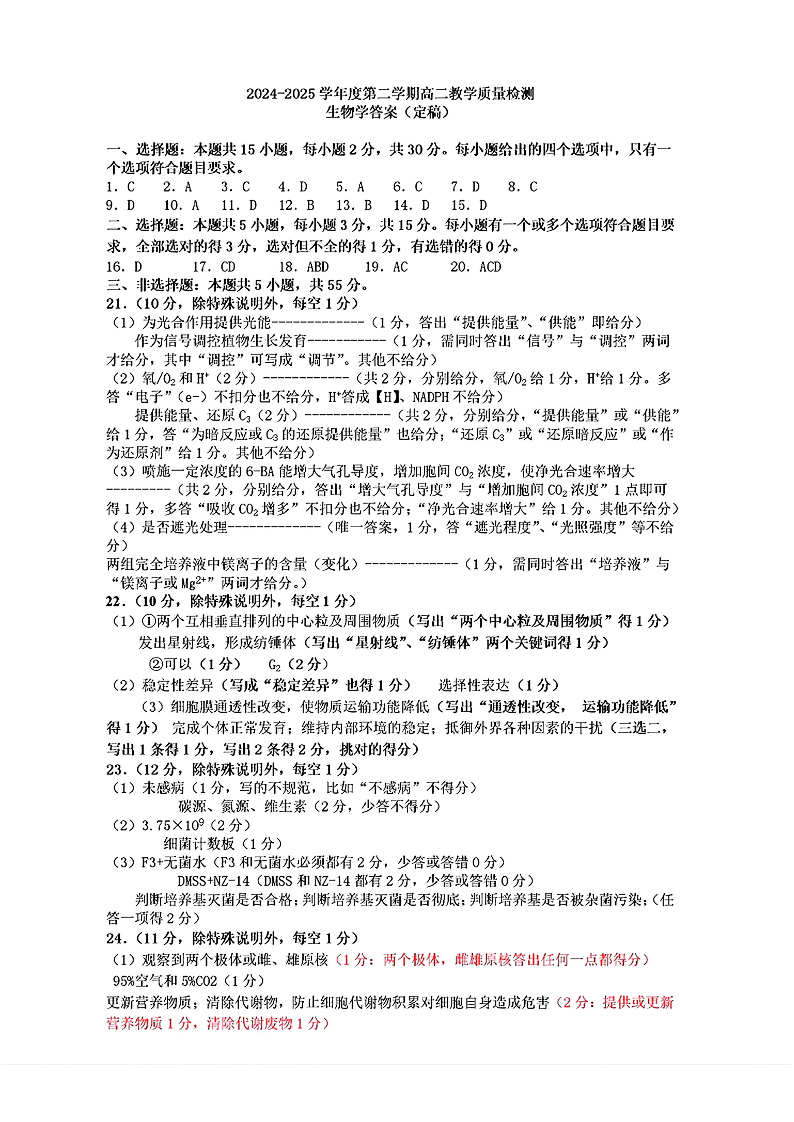 山东省淄博市2026届第二学期高二教学质量检测 生物答案.pdf