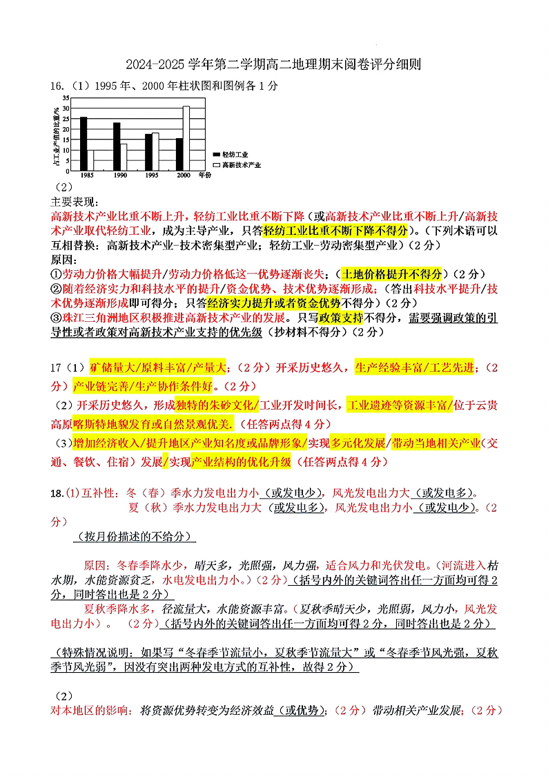 山东省淄博市2026届第二学期高二教学质量检测 地理答案.pdf