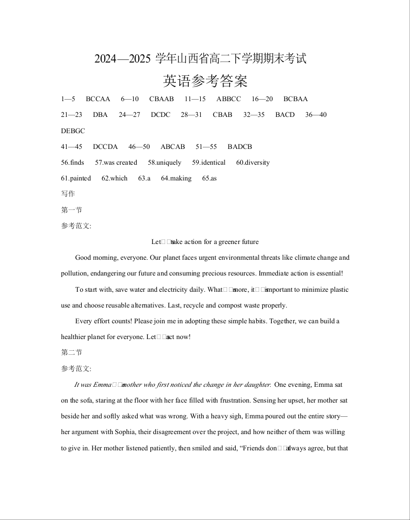 山西省2024-2025学年高二下学期期末考试 英语答案.docx