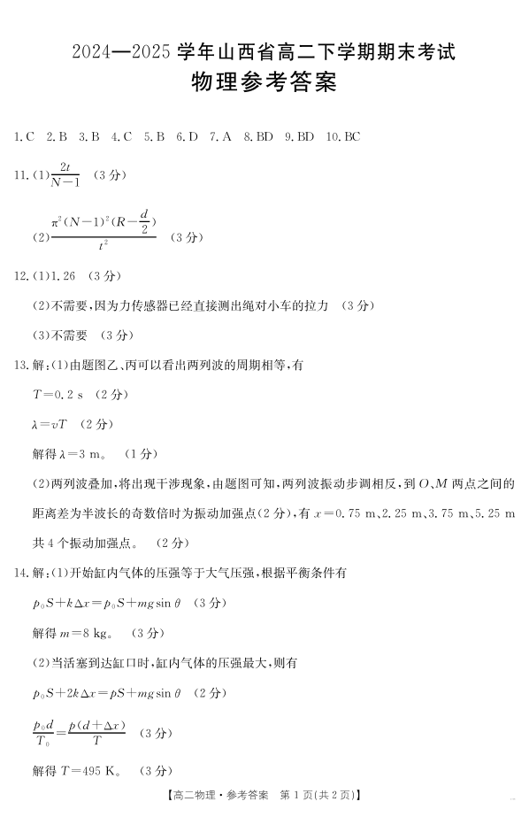 山西省2024-2025学年高二下学期期末考试 物理答案.pdf