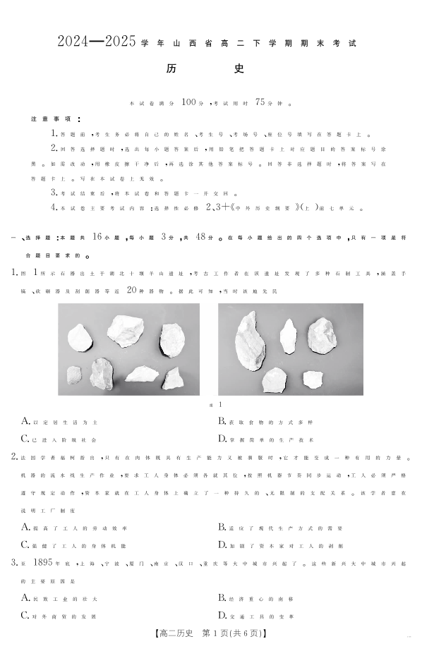 山西省2024-2025学年高二下学期期末考试 历史.pdf