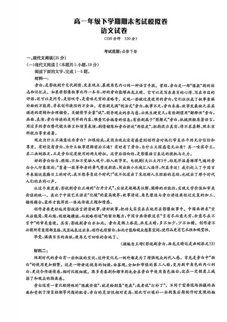 ​甘肃省白银市2024-2025学年高一下学期期未考试 语文试卷(含答案).pdf