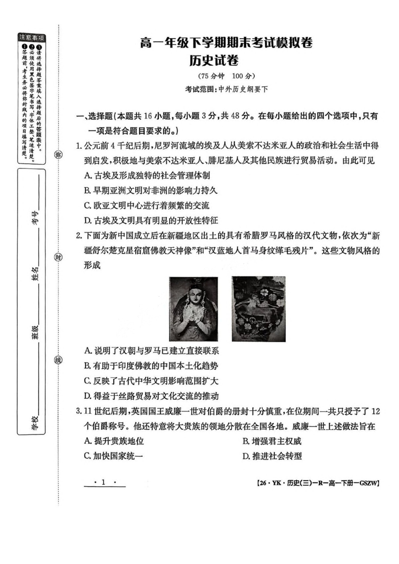 ​甘肃省白银市2024-2025学年高一下学期期未考试 历史试卷(含答案).pdf