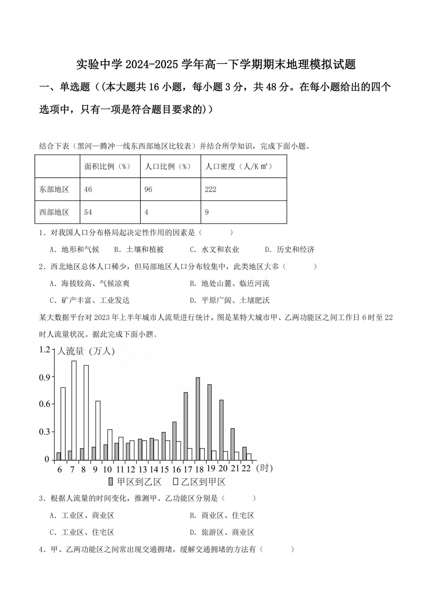 ​甘肃省白银市2024-2025学年高一下学期期未考试 地理试卷(含答案).pdf