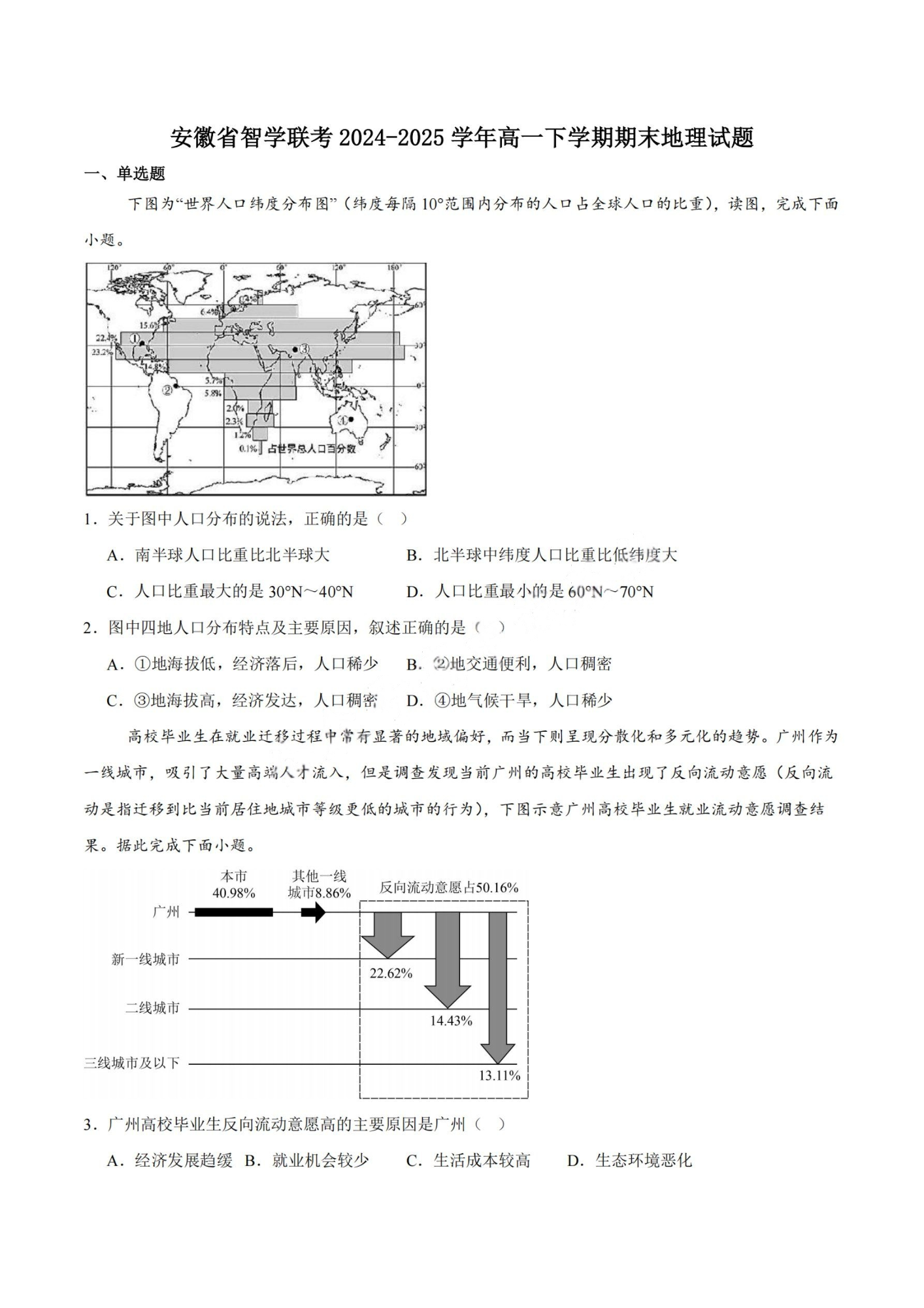 安徽省智学联考2024-2025学年高一下学期期末考试 地理试卷(含答案).pdf
