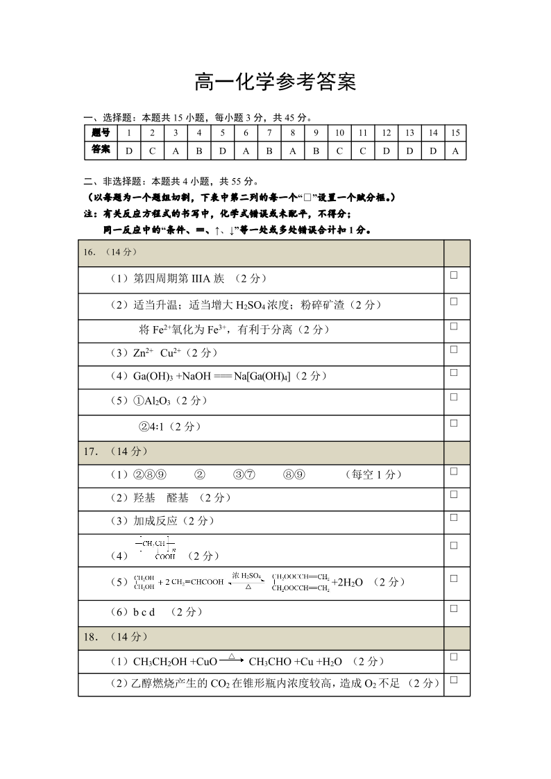 湖北省2024-2025学年七月高一期末统一调研测试 化学答案.pdf