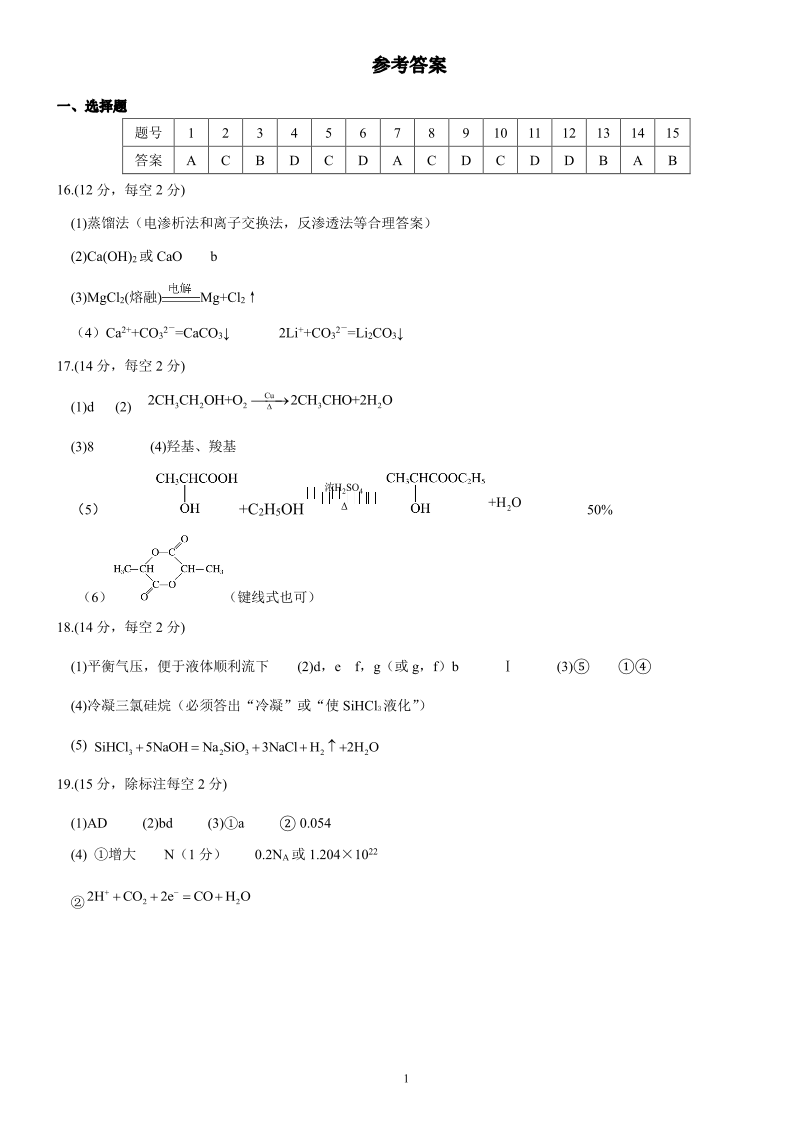 湖北省荆州市2024-2025学年高一年级质量检测 化学参考答案.pdf