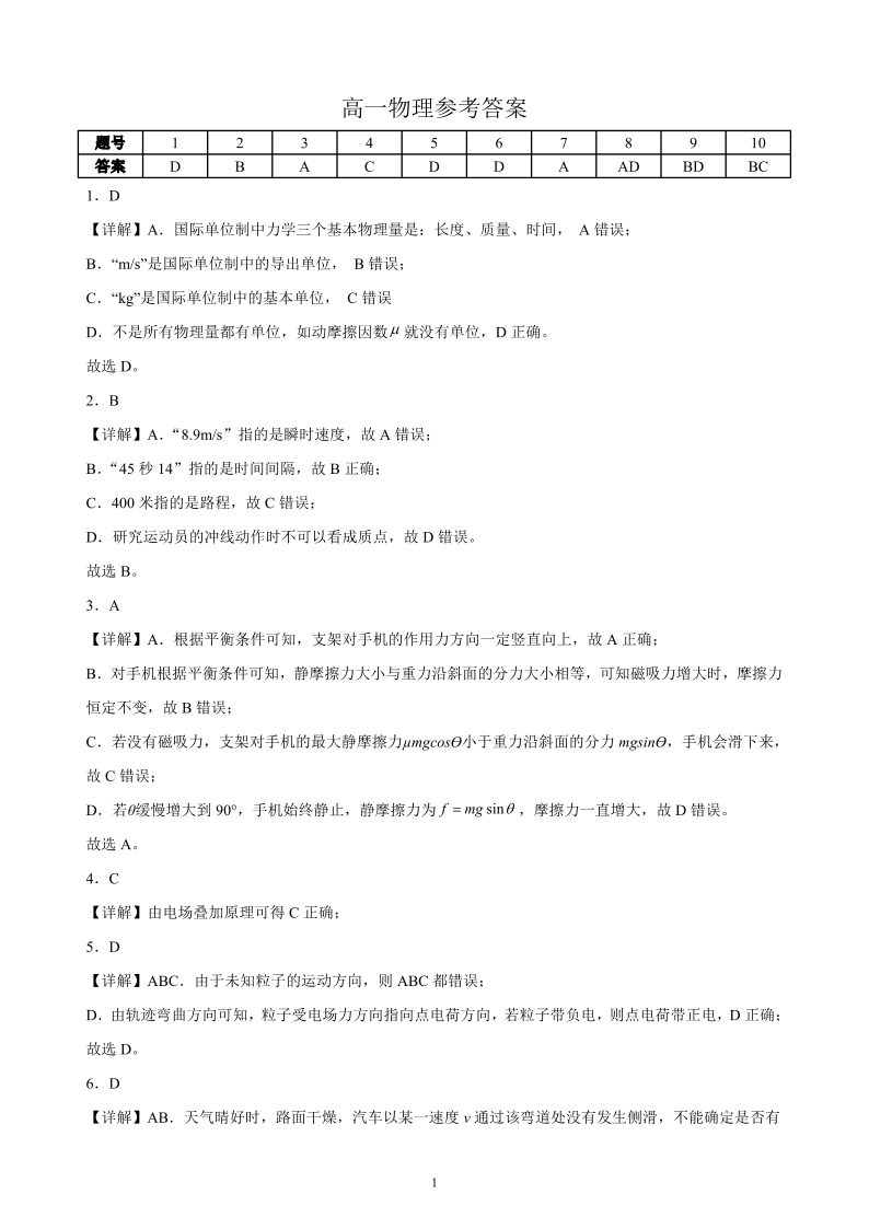 湖北省襄阳市2025年7月高一期末统一调研测试 物理答案.pdf