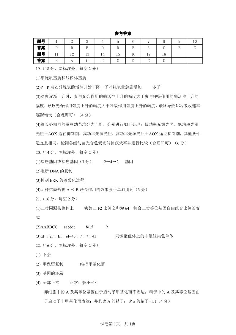湖北省襄阳市2025年7月高一期末统一调研测试 生物答案.pdf