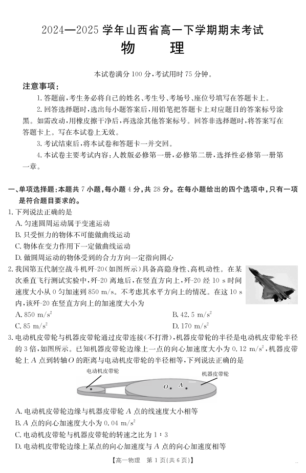 山西省2024-2025学年高一下学期期末考试 物理.pdf