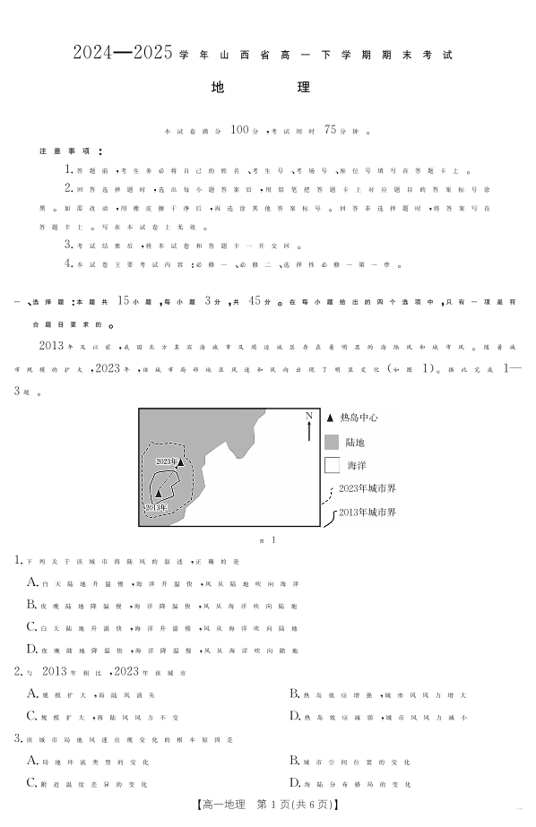 山西省2024-2025学年高一下学期期末考试 地理.pdf