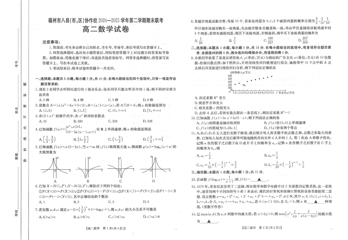 福州市八县(市,区)协作校2024-2025学年第二学期期末联考 数学.pdf