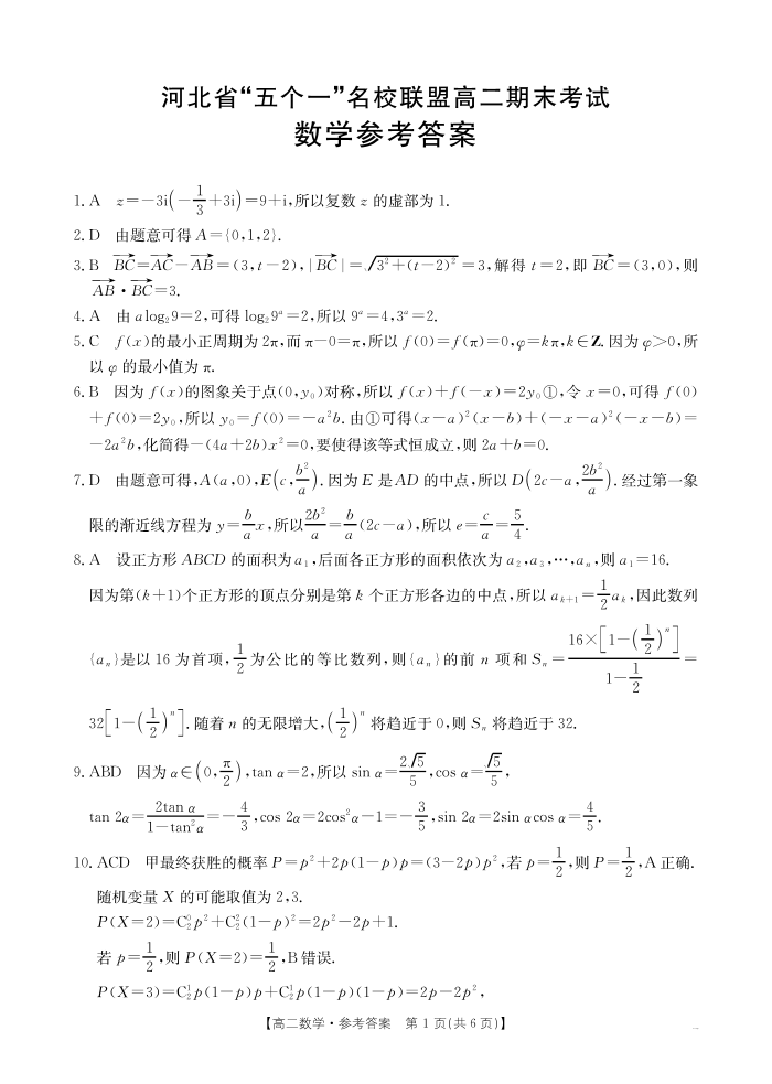 河北省“五个一”名校联盟2024-2025学年高二期末考试 数学答案.pdf