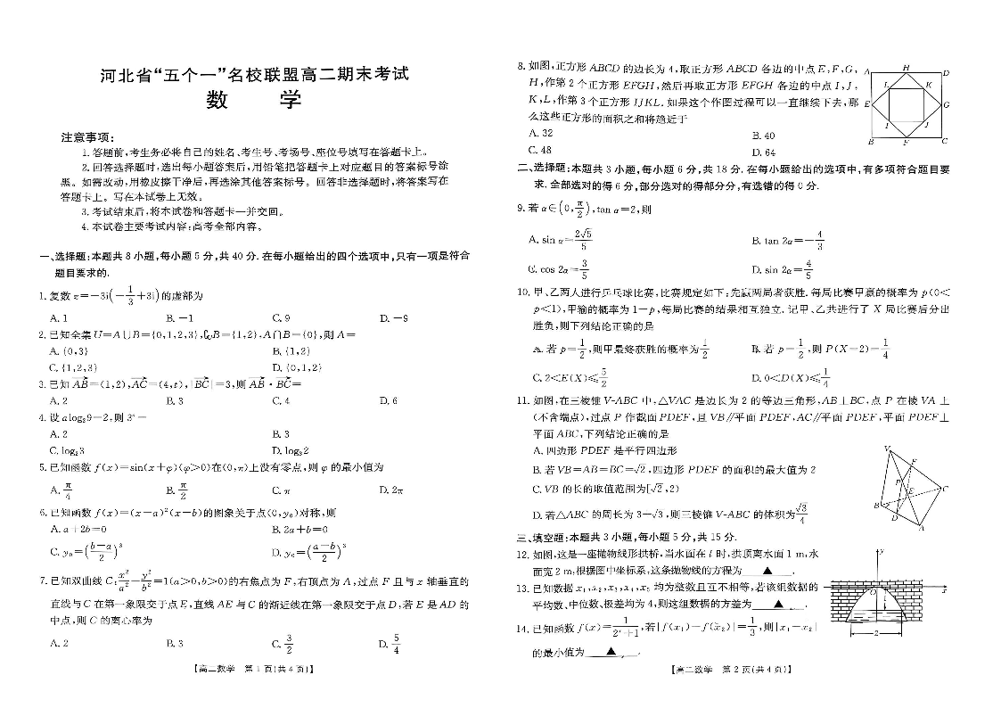 河北省“五个一”名校联盟2024-2025学年高二期末考试 数学.pdf