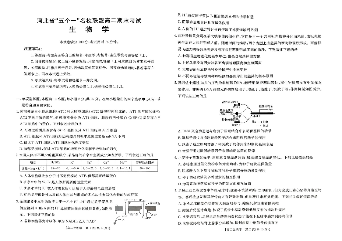 河北省“五个一”名校联盟2024-2025学年高二期末考试 生物.pdf