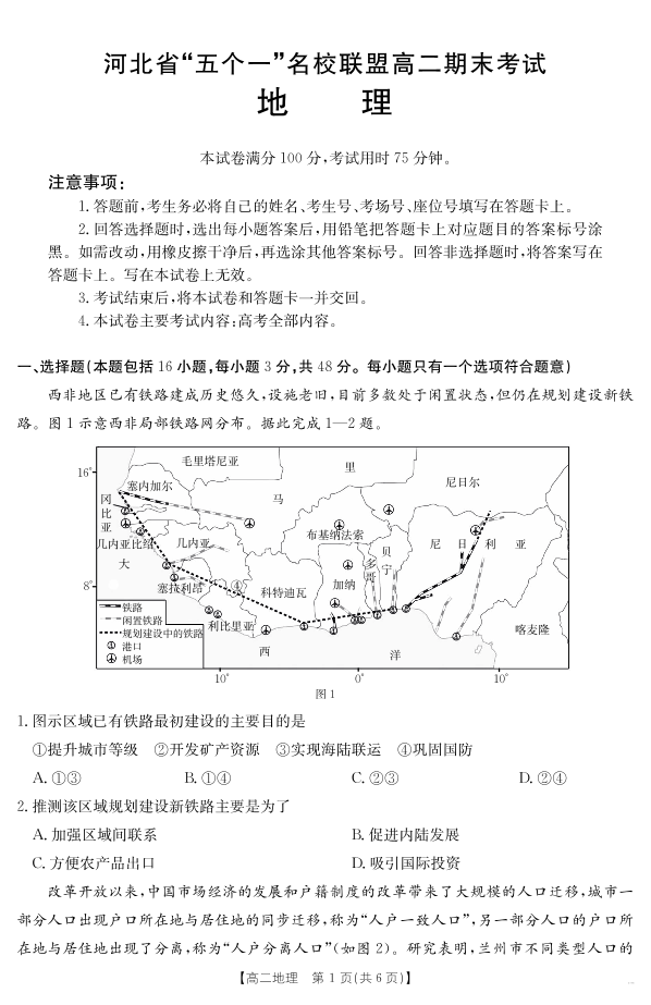 河北省“五个一”名校联盟2024-2025学年高二期末考试 地理.pdf