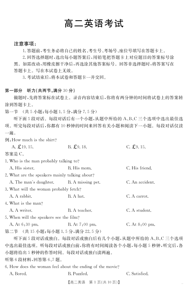 河北省2024-2025学年高二下学期7月联考 英语.pdf
