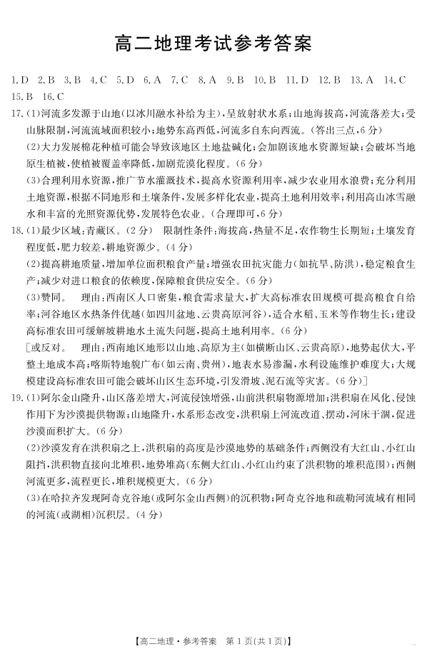 河北省2024-2025学年高二下学期7月联考 地理答案.pdf