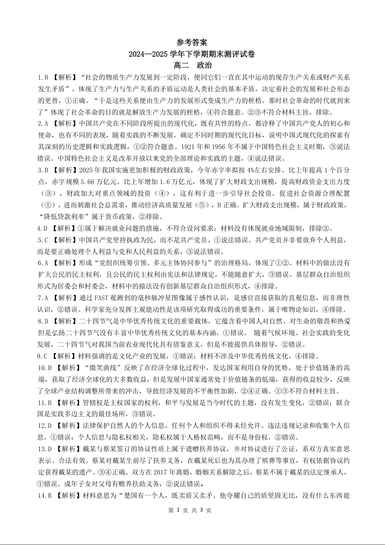 2024—2025学年下学期期末测评试卷 政治答案.docx
