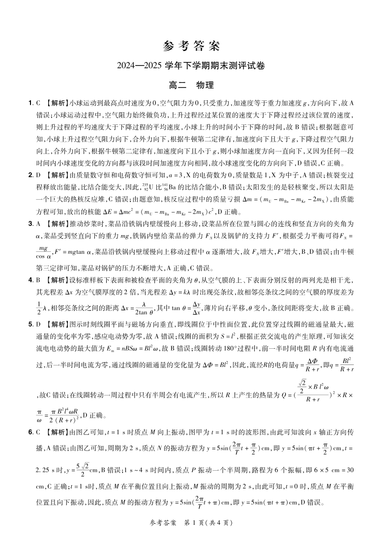 2024—2025学年下学期期末测评试卷 物理答案.pdf