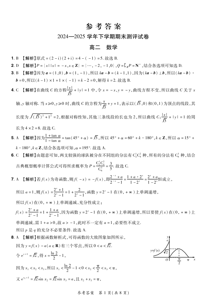 2024—2025学年下学期期末测评试卷 数学答案.pdf