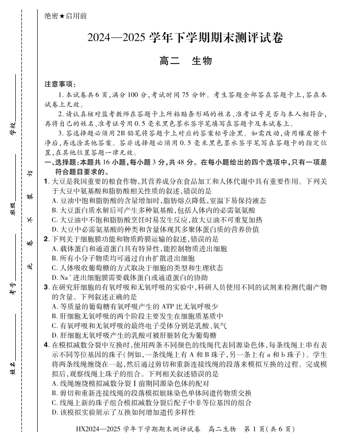 2024—2025学年下学期期末测评试卷 生物.pdf