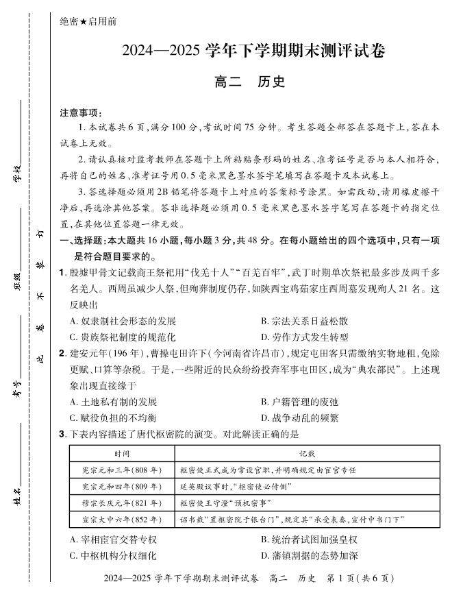2024—2025学年下学期期末测评试卷 历史.pdf