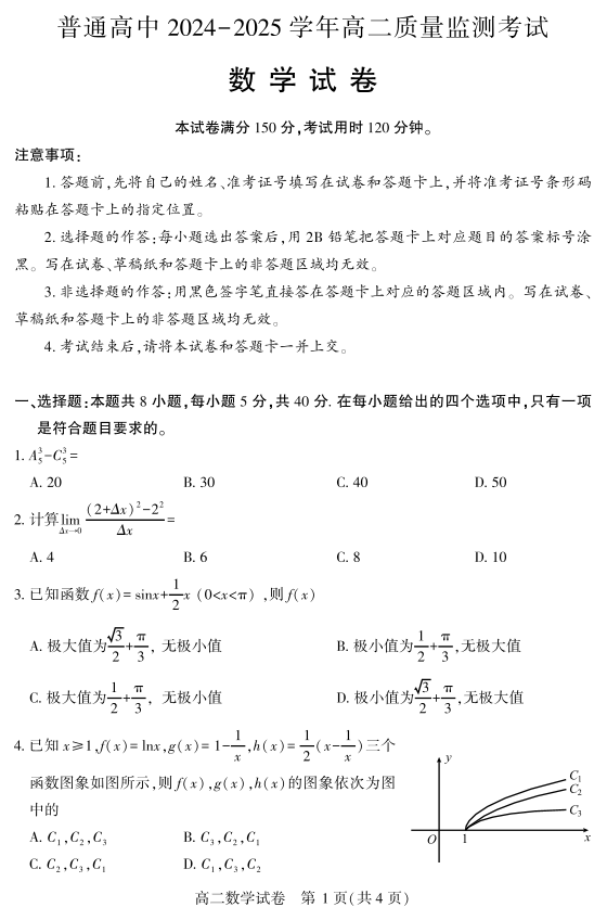 恩施州普通高中2024-2025学年高二质量监测考试 数学.pdf