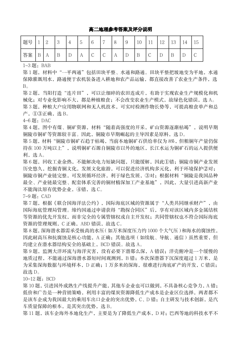 恩施州普通高中2024-2025学年高二质量监测考试 地理答案.pdf