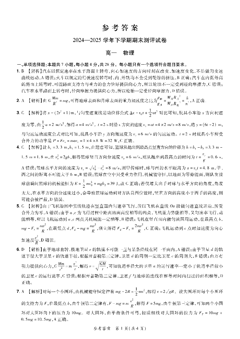 2024—2025学年下学期期末测评试卷 物理答案.pdf