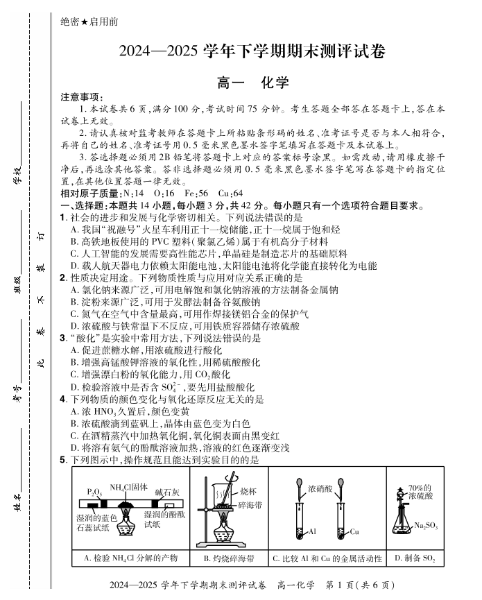 2024—2025学年下学期期末测评试卷 化学.pdf