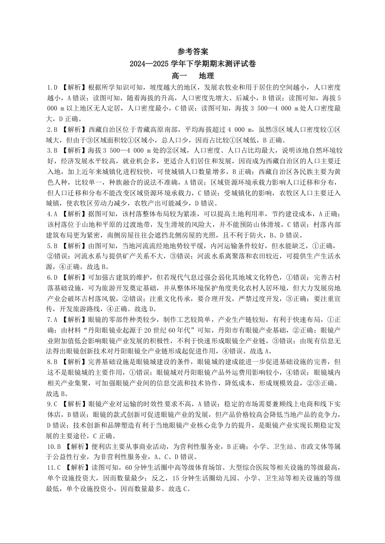 2024—2025学年下学期期末测评试卷 地理答案.docx