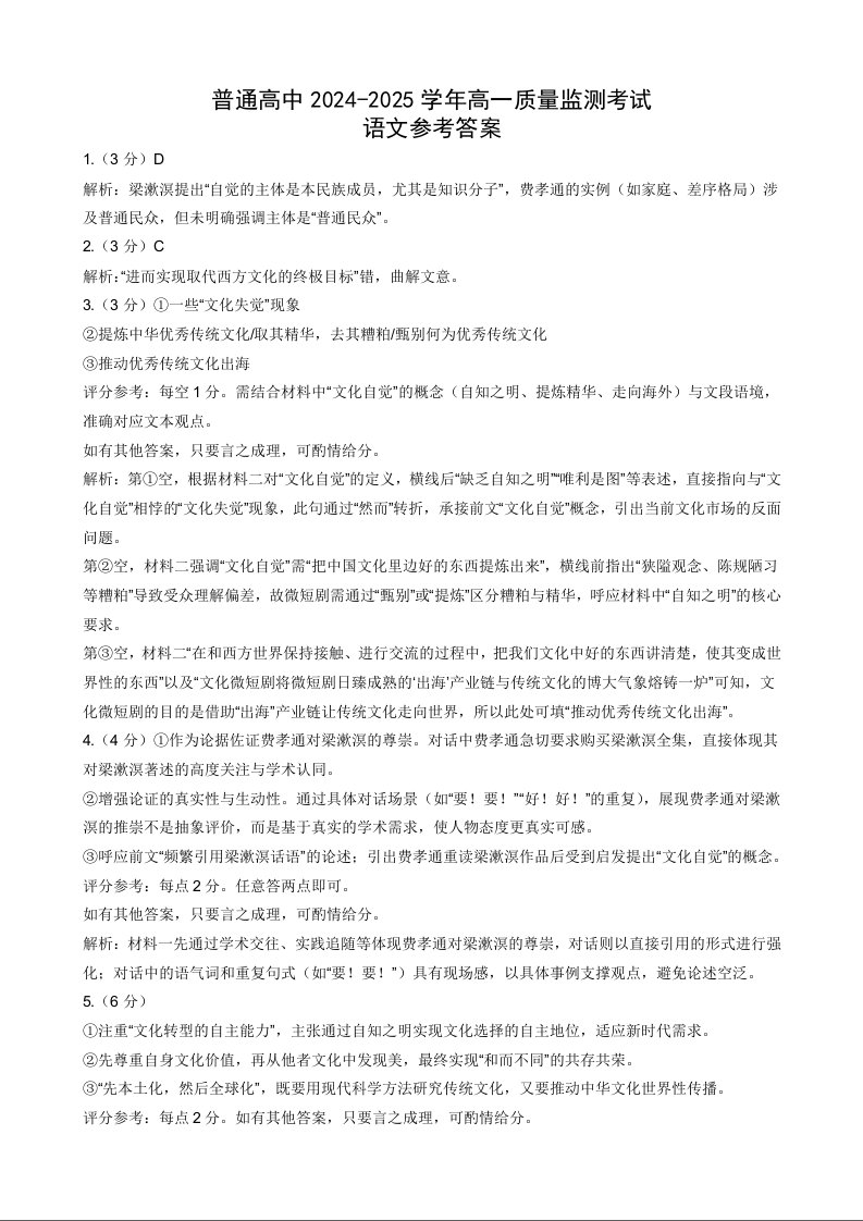 恩施州普通高中2024-2025学年高一质量监测考试 语文答案.docx