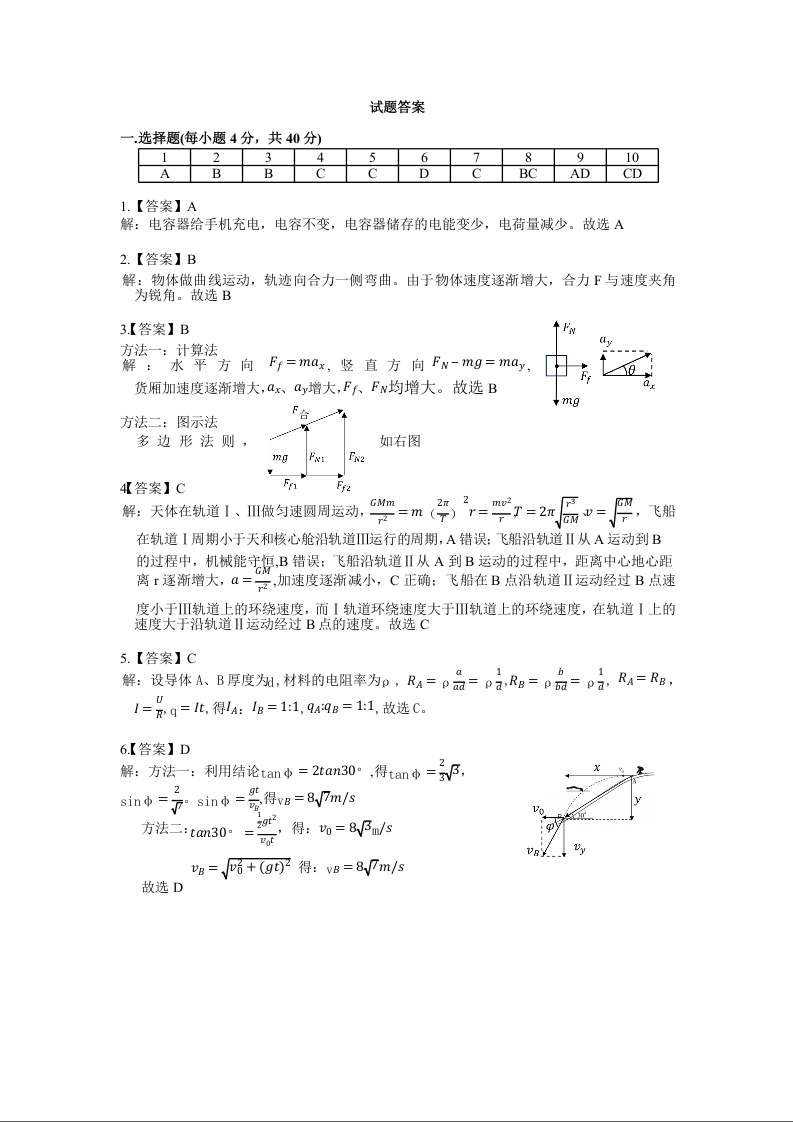 恩施州普通高中2024-2025学年高一质量监测考试 物理答案.docx