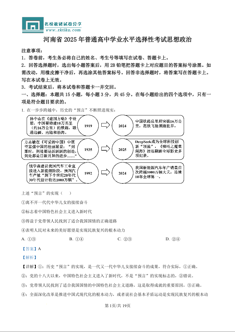 2025河南高考政治真题(含解析).docx