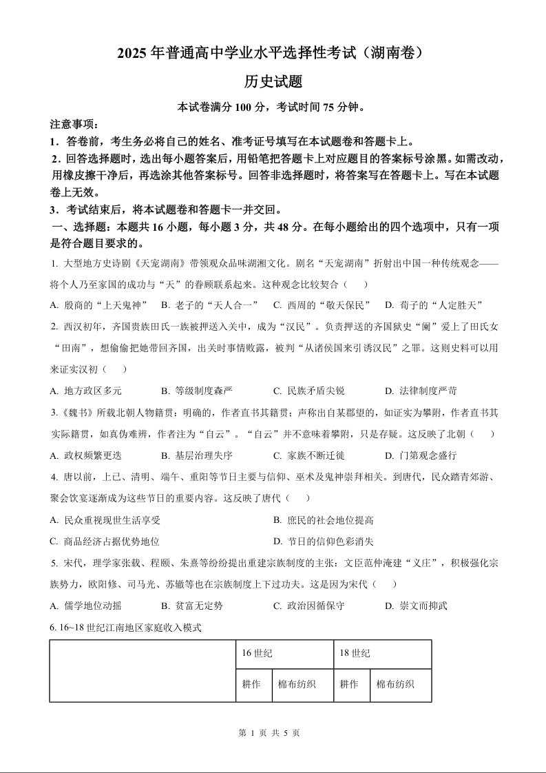 2025年湖南省高考历史真题.docx
