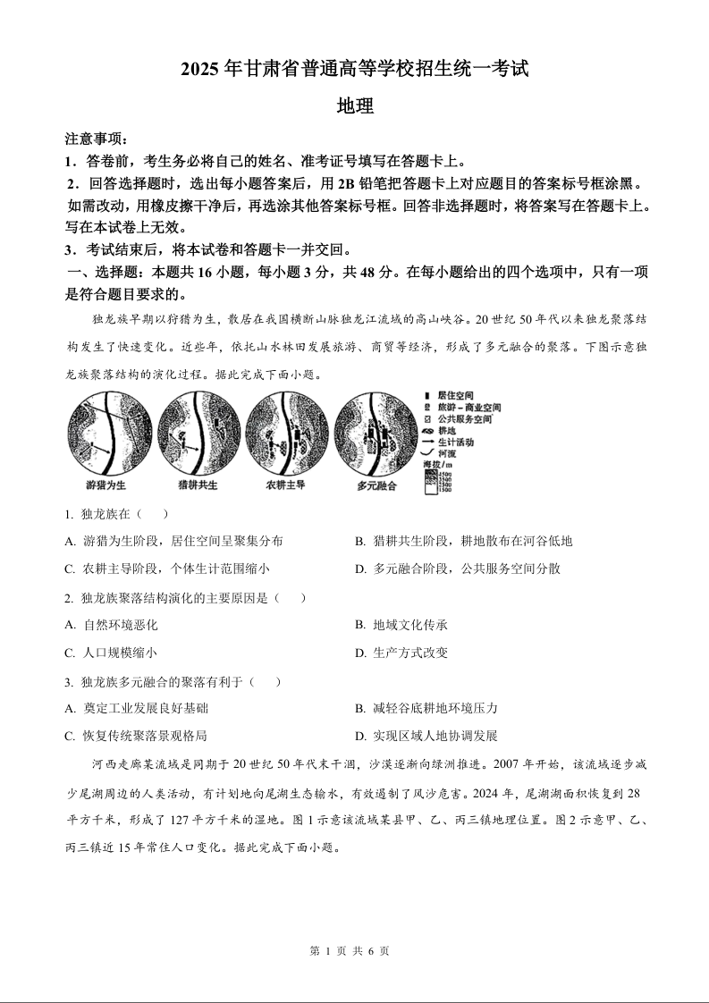 2025年甘肃省高考地理真题.docx