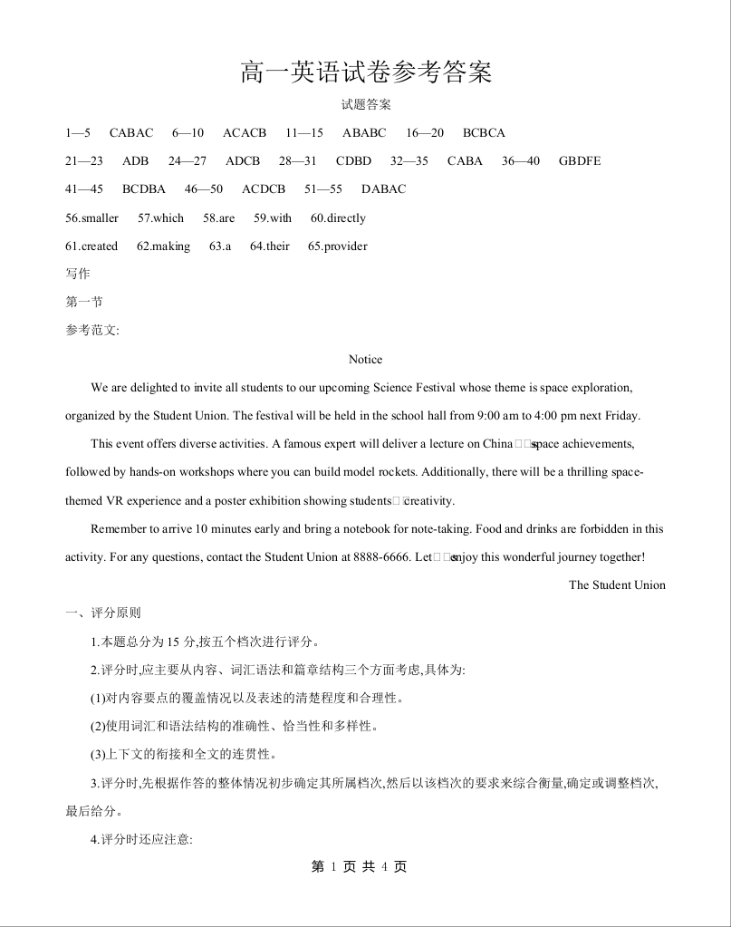 新疆2024-2025学年高一下学期7月联考试卷 英语答案.docx