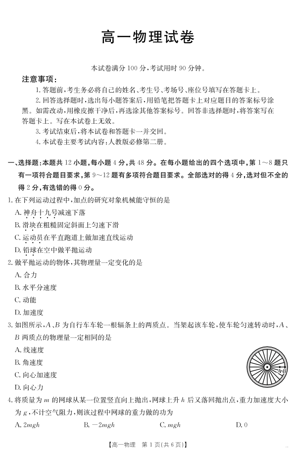 新疆2024-2025学年高一下学期7月联考试卷 物理.pdf