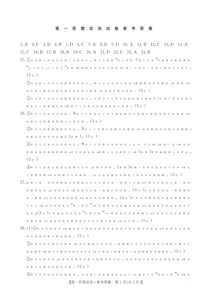 新疆2024-2025学年高一下学期7月联考试卷 思想政治答案.pdf