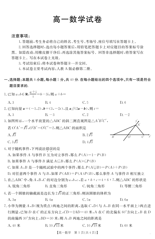 新疆2024-2025学年高一下学期7月联考试卷 数学.pdf