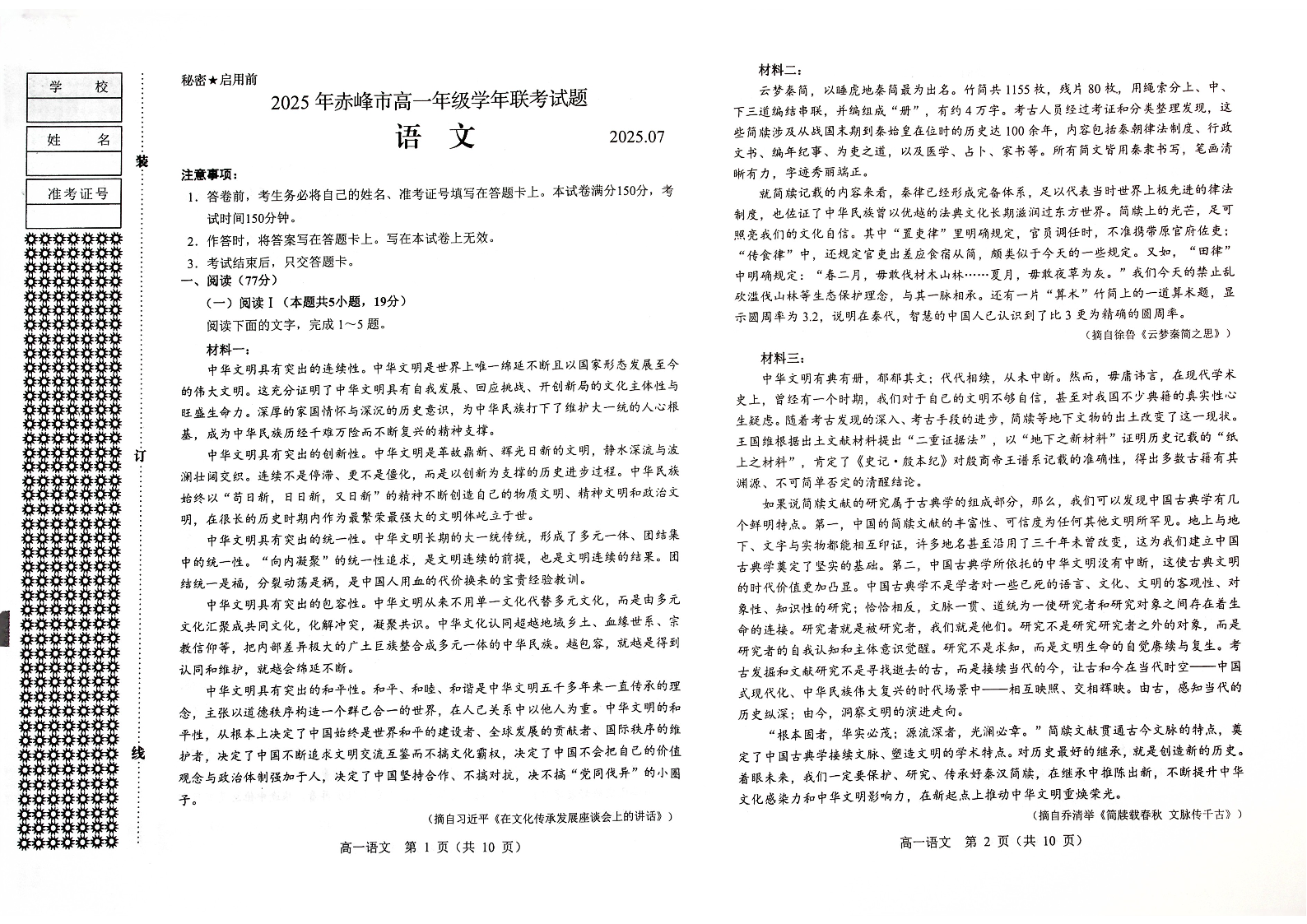 2025年赤峰市高一年级学年联考试题 语文.pdf