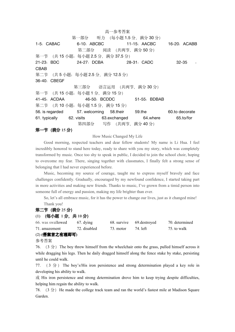 2025年赤峰市高一年级学年联考试题 英语答案.pdf